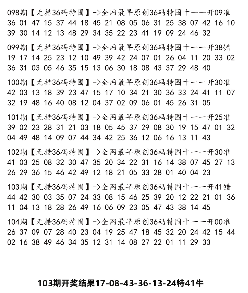 2025104期:36码特围